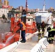 Il servizio antincendio nei porti è privato e deve essere autorizzate preventivamente dalla Capitaneria di porto locale che ne disciplinano lo svolgimento. Generalmente è l'armatore della nave che si accolla il costo del servizio. Gli operatori possono appartenere a: ex ausiliari dei Vigili del Fuoco, ex militari della Marina Italiana o marittimi qualificati da appositi corsi antincendio. Tali figure sono importanti per la prevenzione e in considerazione della gravità degli incendi nel settore dei trasporti marini.